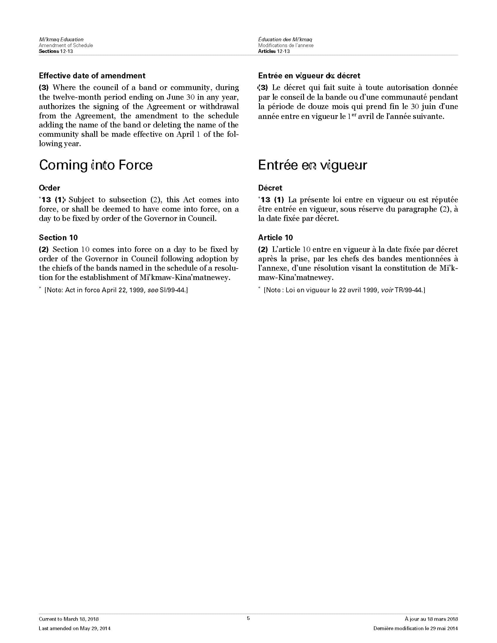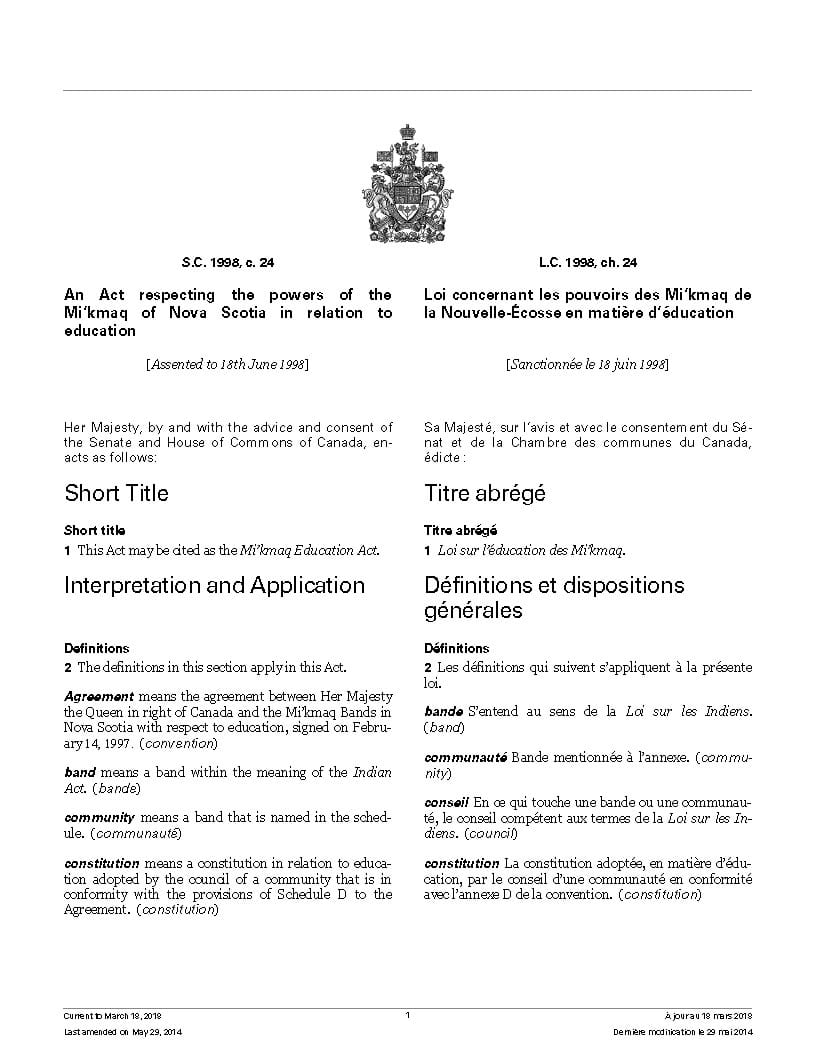 - Miawpukek First Nation of Conne River Final Agreement